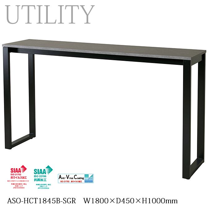 【ポイント7倍!週末限定】 抗ウイルス カウンターテーブル 業務用 カフェ 施設 飲食店 バー 180cm幅 ブラックフレーム ストーングレー ASO-HCT1845B-SGR