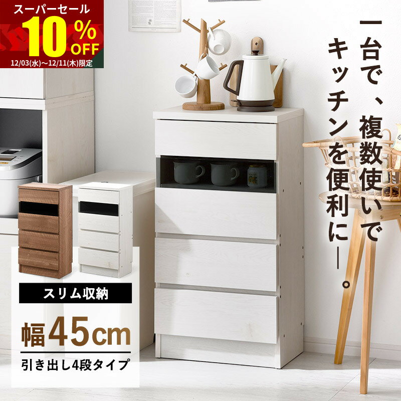キッチン 収納 カウンター下収納 チェスト 幅40 ホワイト色 幅40×奥行22×高さ80cm yhk-0204-WH