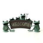 カエル 置物 置き物 玄関 雑貨 オブジェ ウェルカムサイン ボード Welcome おしゃれ グッズ インテリア ブリキのカエル ウェルカムスタンド