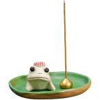 お香立て カエル 香皿付き 線香立て 陶器製 可愛い 縁起物 手作り おしゃれ ギフト(うつ伏せ, 中)