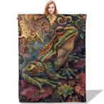 【並行輸入品】Plistiz 鮮やかなカエル スローブランケット 50インチ x 60インチ、芸術的な野生生物がテーマのブランケット リビングル