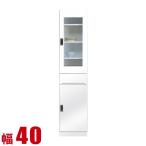 隙間収納 40 すき間収納 フィット 幅40cm 開き戸ガラス扉タイプ 鏡面ホワイト リビング収納 キッチン収納 キッチンボード キッチンキャビネット 完成品 日本製