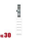 隙間収納 30 すき間収納 フィット 幅30cm 引出しガラス扉タイプ 鏡面ホワイト リビング収納 キッチン収納 キッチンボード キッチンキャビネット 完成品 日本製