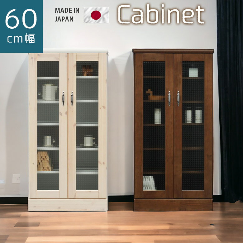 【全商品に使える10%offクーポンあり!!】 食器棚 キッチン収納 コンパクト ロータイプ 幅60cm カップボード 国産 日本製 キャビネット 高さ120cm 開き戸 北欧 おしゃれ カントリー ホワイト 白 ブラウン 一人暮らし 木製 クロス 60cm幅 60 ガラス 開梱設置