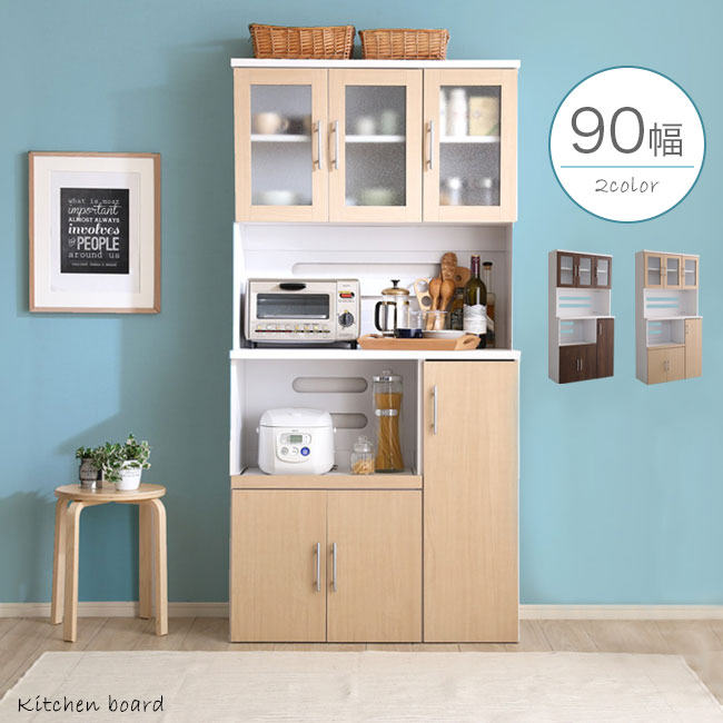 食器棚 完成品 90 安い ゴミ箱上ラック レンジ台 収納 ブルックリン ナチュラル ヴィンテージ風 キッチン 収納 アイン 幅89.7 日本製 国産 KAGUCOCO