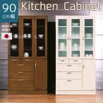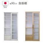 食器棚 スリム 収納 シンプル おしゃれ 幅90cm キッチンボード カップボード 木製 国産 ホワイト ブラウン
