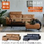 【選べる開梱設置】 関家具 3人掛けソファーセット スツール付き 3P 幅198 本革風 ヴィンテージ プルート レザーテックス 2点セット おしゃれ CRASH クラッシュ