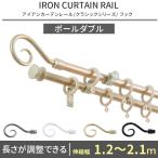 カーテンレール ポールダブル アイアン おしゃれ 取り付け DIY 伸縮タイプ アンティークタイプ フック 1.2〜2.1m C-F-3