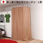 つっぱりカーテンポール ライトブラウン コーナーL字型 オフィス 目隠しカーテン つっぱりパーテーション L字 コーナー 間仕切りカーテン 代引不可