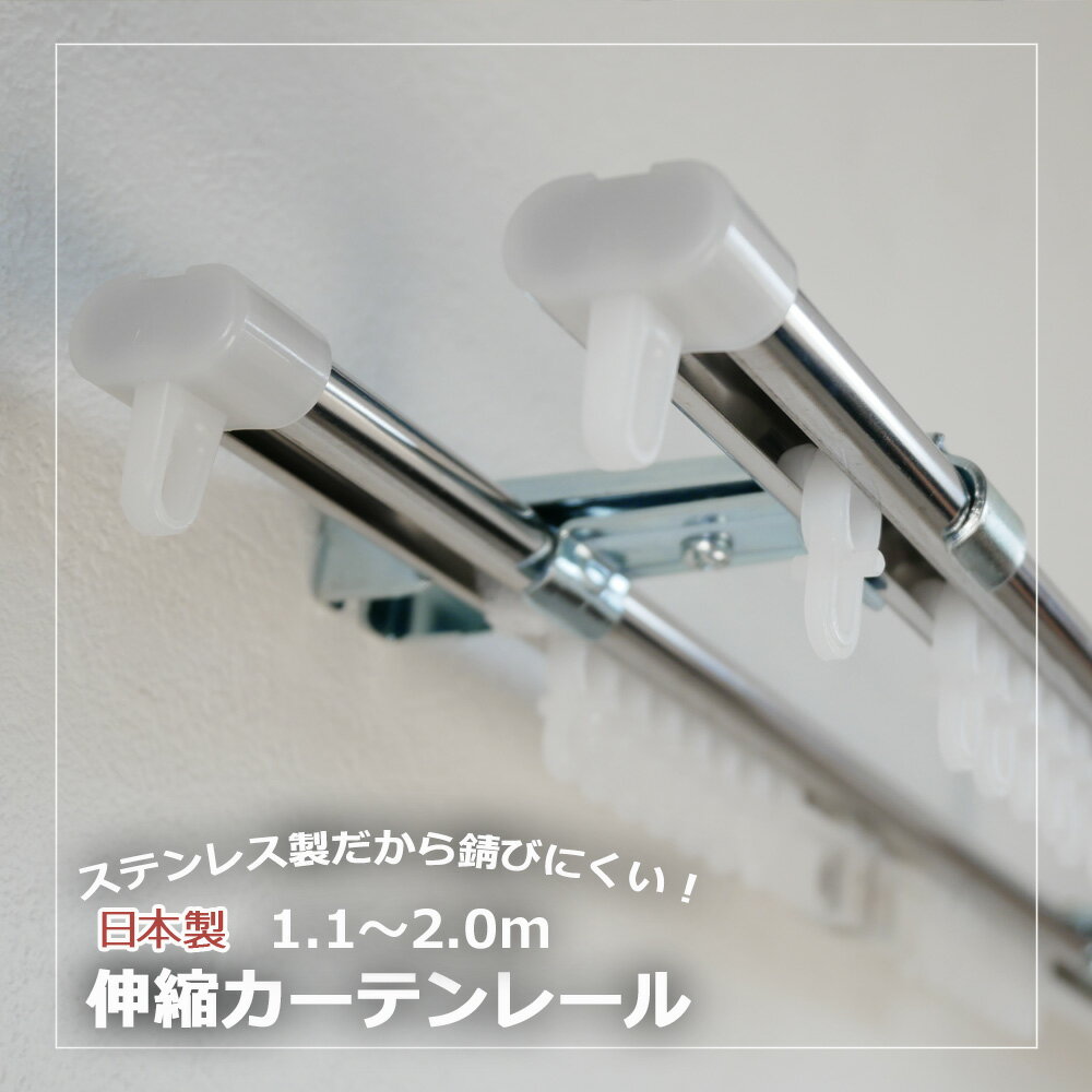 【2本購入で5%/3本購入で10%OFF】1.1〜2.0m 日本製 C型 伸縮 ステンレス カーテンレール 2mダブル 1本/2本/3本 m W ベーシック 天井付け 正面付け お洒落 新築 新生活 伸縮自在 DIY シルバー ステンレス製 丈夫 サビに強い 両開き ダブルセット リフォーム 即納 幅2m