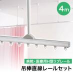 カーテンレール 天井付け 病院用 医療用 吊り下げ 取り付け H型リブレール 4m 間仕切り 吊棒直線セット H-N-0