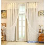 カーテン 遮光 断熱 二重 レース 一体型 姫系 フックカーテン 防音 チュール付き プライバシー保護 刺〓 花柄 無地 丈直し 安い オーダーカーテン