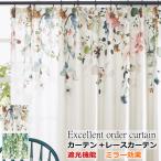 カーテン 4枚セットと2枚セット 遮光1級or遮光2級カーテン+リーフ柄ミラーレースカーテン 丈205cm〜丈225cm オーダーカーテン ドレープカーテン curtain