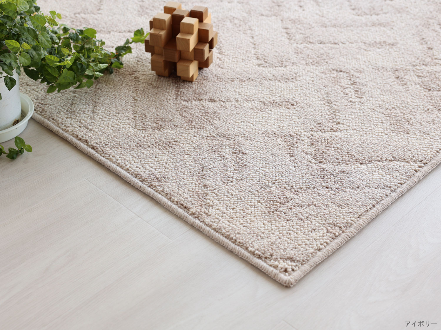 ウール製 パターンデザイン ラグ カーペット【サイズ:約140cm×200cm】【日本製】新毛ウール100% ラグ 絨毯石畳み調デザイン ルクソール Luxor防炎加工 防虫 防ダニ加工 制電加工防音カーペット 抗菌加工 床暖対応