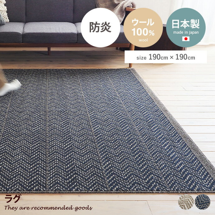 【クーポンで15%OFF! 3/1 0:00~23:59まで★】ラグ ラグマット マット カーペット 絨毯 四角 190×190 正方形 防ダニラグ ホットカーペット対応 日本製ラグ ウール100% オールシーズン 幅190 人気 新生活 オシャレ お洒落 国産ラグ 床暖対応