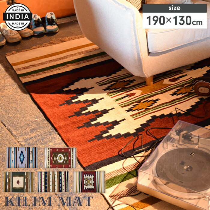 【楽天スーパーSALE10%OFF】ラグマット 130×190cm キリム柄 キリムマット カーペット マット ラグマット インド製 カーペット ラグ じゅうたん 高級感 おしゃれ 北欧 インテリア リビング ダイニング 寝室 デザイン 新生活 一人暮らし