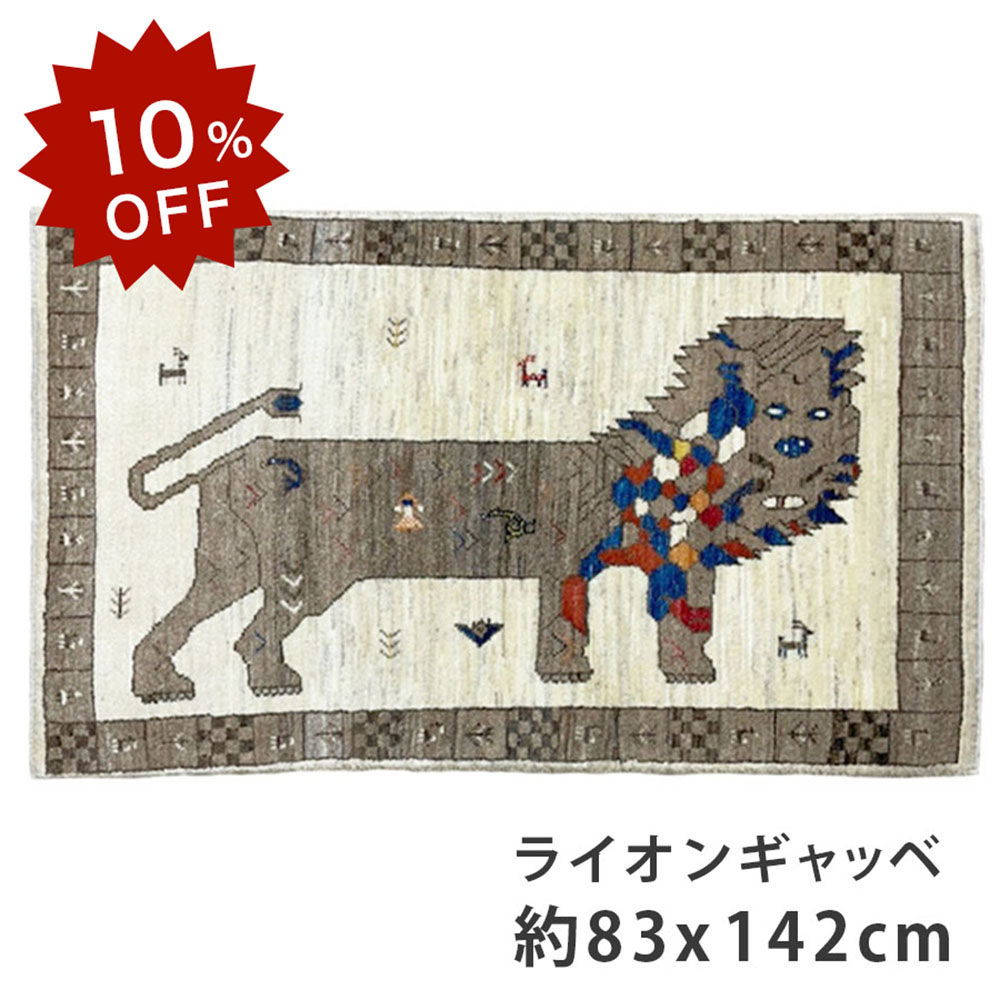 【10%OFF!楽天スーパーSALE限定!】ペルシャギャッべ ペルシャ ライオン ギャッベ 約83cm x 142cm ナチュラル ウール100% 玄関 リビング 羊毛 自然 ユニーク モコモコ ふかふか 厚手 現品限り 楽天セール 期間限定 ホットカーペット対応 床暖房対応 オールシーズン 一年中