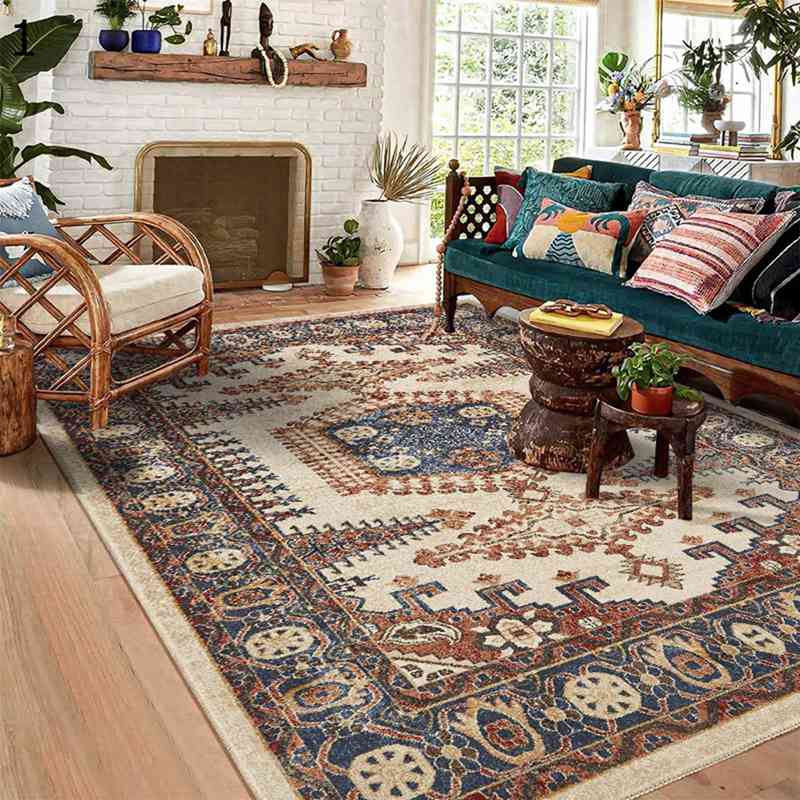 ラグマット カーペット ペルシャ? エスニック系 アンティーク レトロ花柄 センターマット おしゃれ インテリア 防滑 床暖房 床保護 防音効果 滑り止め 洗える 居間 民泊 屋内 四季通用