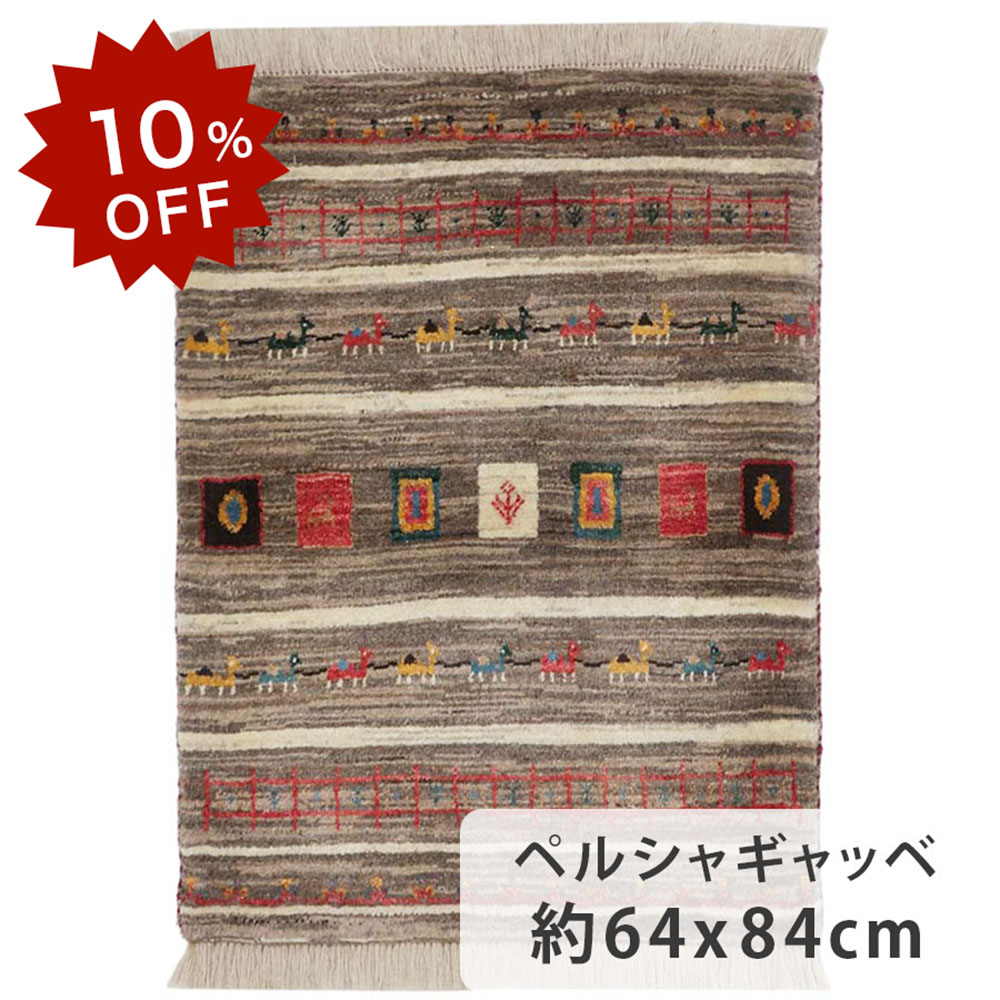 【10%OFF!楽天スーパーSALE限定!】ペルシャギャッベ ファインクオリティ 約63cm x 82cm 玄関マット ウール100% ナチュラル 羊毛 天然 ふかふか モコモコ 四角 ボーダー 現品限り ホットカーペット対応 床暖房対応 オールシーズン 一年中 ペルシャ製