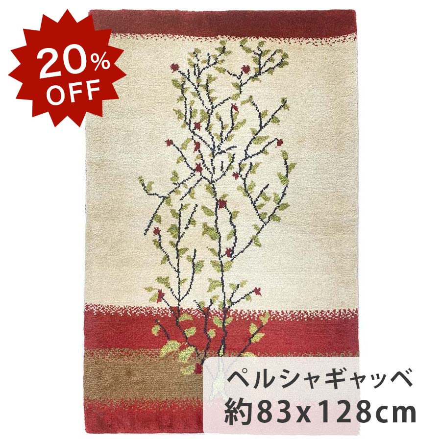 【20%OFF!楽天スーパーSALE限定!】ペルシャギャッベ 約83cm x 128cm 玄関マット ウール100% ナチュラル レッド グリーン 生命の樹 羊毛 天然 ふかふか モコモコ 現品限り ホットカーペット対応 床暖房対応 オールシーズン 一年中 ペルシャ製