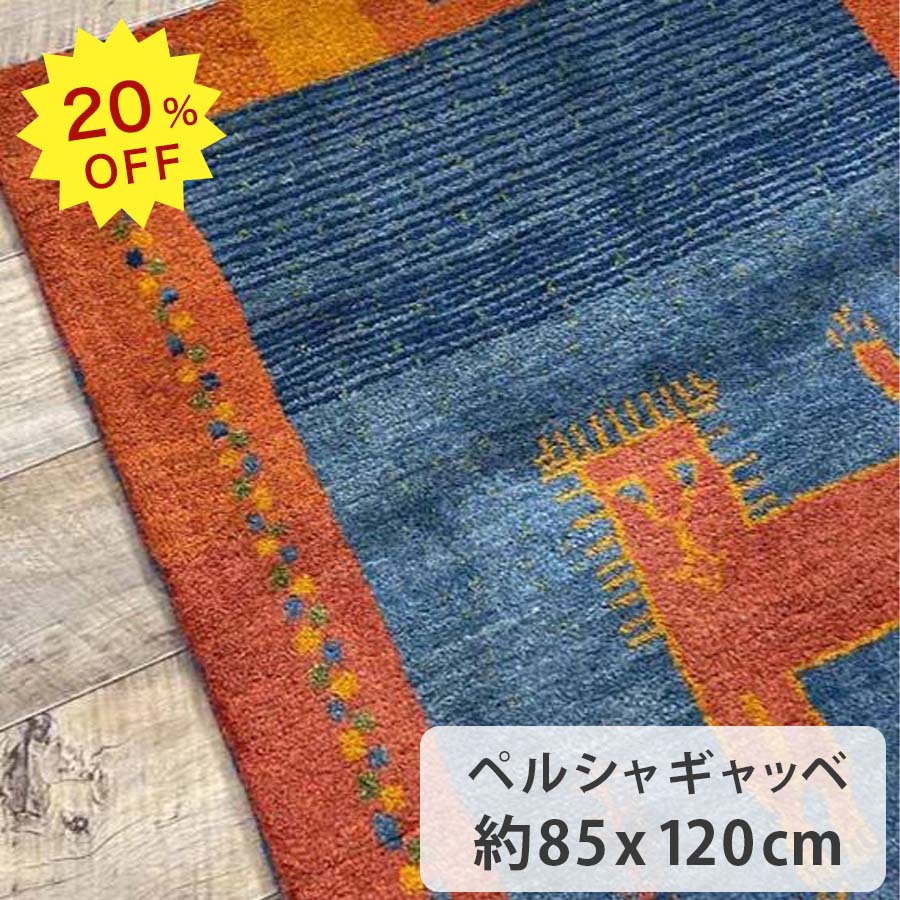 【20%OFF!楽天スーパーSALE限定!】ペルシャギャッベ 約85cm x120cm ペルシャ ライオン ギャッベ 厚手 玄関マット オレンジ ブルー ウール 青色 羊毛 天然 モコモコ ふかふか 期間限定 現品限り ホットカーペット対応 床暖房対応 オールシーズン 一年中 ペルシャ製