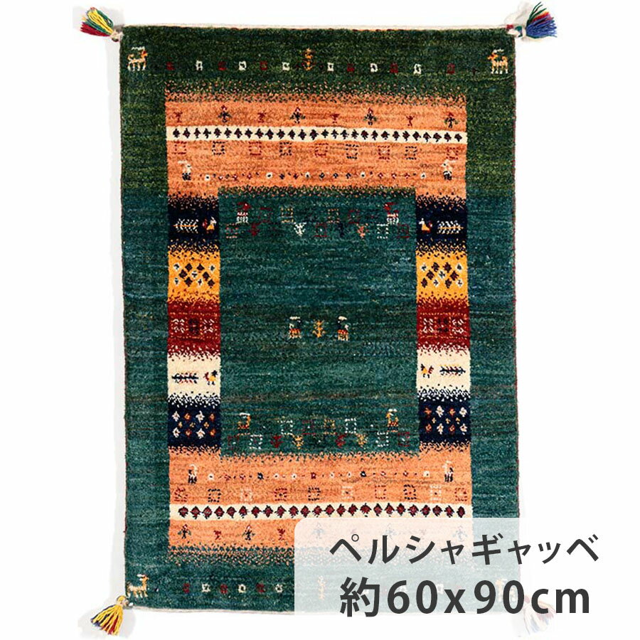 【10%OFF!楽天スーパーSALE限定!】ペルシャギャッベ ファインクオリティ 約60cm x 90cm 玄関マット ウール100% グリーン 緑色 生命の樹 ヤギ 羊毛 天然 ふかふか モコモコ 四角 ボーダー 現品限り ホットカーペット対応 床暖房対応 オールシーズン 一年中 ペルシャ製