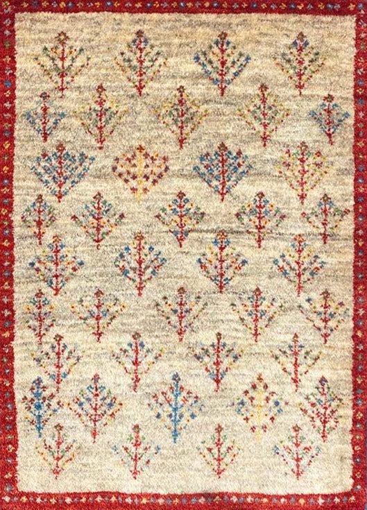 【10%OFF!楽天スーパーSALE限定!】ペルシャギャッベ ファインクオリティ 約69cm x 96cm 玄関サイズ ウール100% 羊毛 天然 ふかふか モコモコ 生命の樹 木 植物 カラフル ベージュ ブラウン ホットカーペット対応 床暖房対応 オールシーズン 厚手 現品限り ペルシャ製