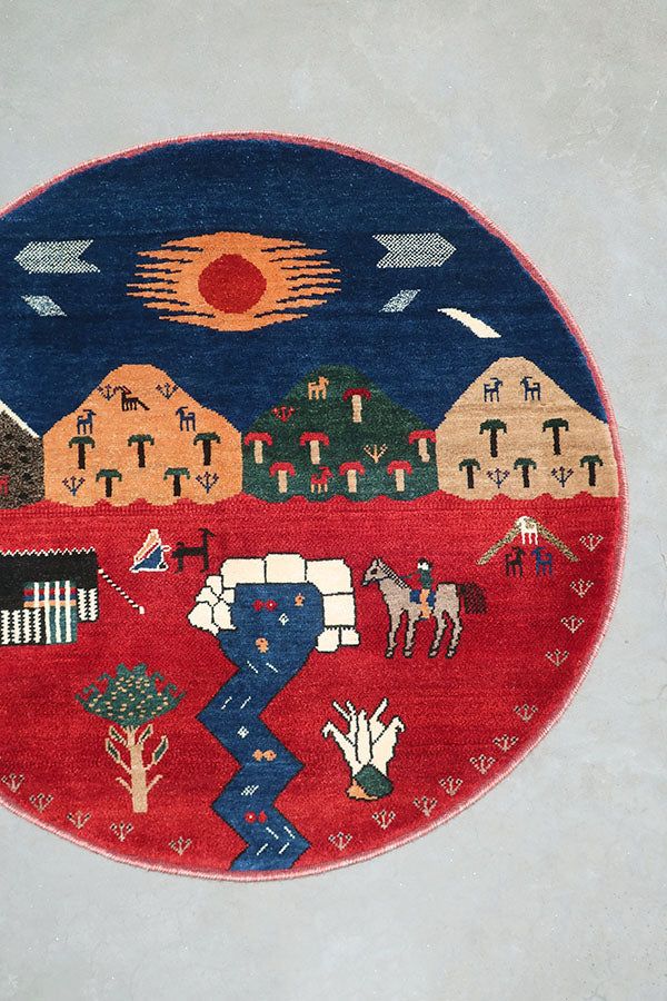 【10%OFF!楽天スーパーSALE限定!】ペルシャギャッベ ファインクオリティ 約97cm x 100cm ナチュラル 玄関サイズ 円形 ラウンド ウール100% 羊毛 天然 ふかふか モコモコ ナチュラル ホットカーペット対応 床暖房対応 オールシーズン 現品限り 生命の樹 動物 魚 鳥