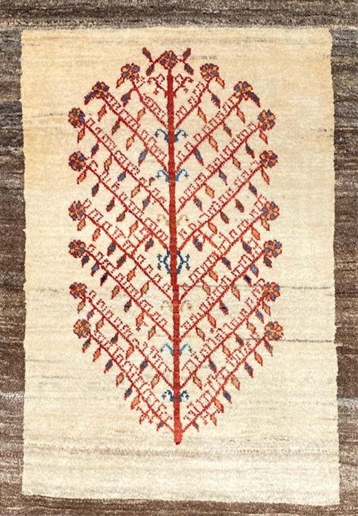 【50%OFF!楽天スーパーSALE限定!】ペルシャギャッベ ファインクオリティ 約59cm x 91cm 玄関サイズ ナチュラル ウール100% 羊毛 天然 ふかふか モコモコ 厚手 モダン 生命の樹 植物 ホットカーペット対応 床暖房対応 オールシーズン 現品限り 春 夏 秋 冬 手織り