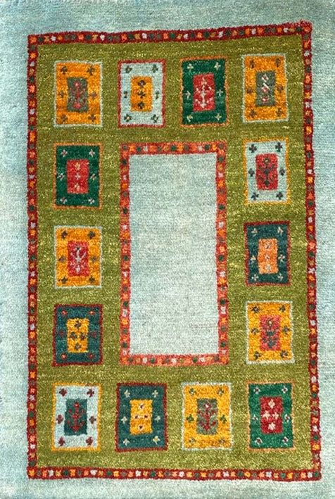 【10%OFF!楽天スーパーSALE限定!】ペルシャギャッベ ファインクオリティ 約72cm x 94cm グリーン ブルー 玄関サイズ ウール100% 羊毛 天然 ふかふか モコモコ ナチュラル ホットカーペット対応 床暖房対応 オールシーズン 現品限り ペルシャ製 生命の樹 鳥