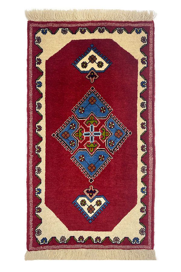 【10%OFF!楽天スーパーSALE限定!】ペルシャ絨毯 ヤラメ トライバルラグ 約54cmx 94cm 玄関マット レッド 赤色 長方形 羊毛 ウール メダリオン ホットカーペット対応 床暖房対応 室内 オールシーズン 一年中 現品限り 一点もの 高級 北欧 絨毯 ラグ 夏