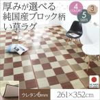 (タイムセール中) い草ラグ 約6畳 261×352cm おしゃれ ウレタン6mm 純国産ブロック柄 日本製 夏用 ラグマット