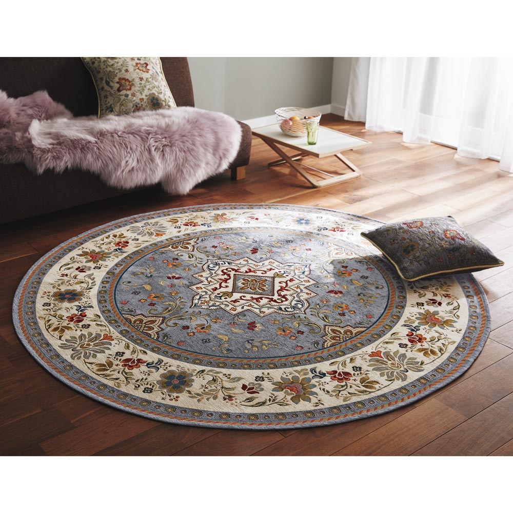 【クーポン10%OFF 2/10迄】 イタリア製ジャカード織ラグ〈イスタ〉円形 径約175cm 洗えるラグ カーペット ラグ マット H82914 \LINE友だち登録でクーポン/
