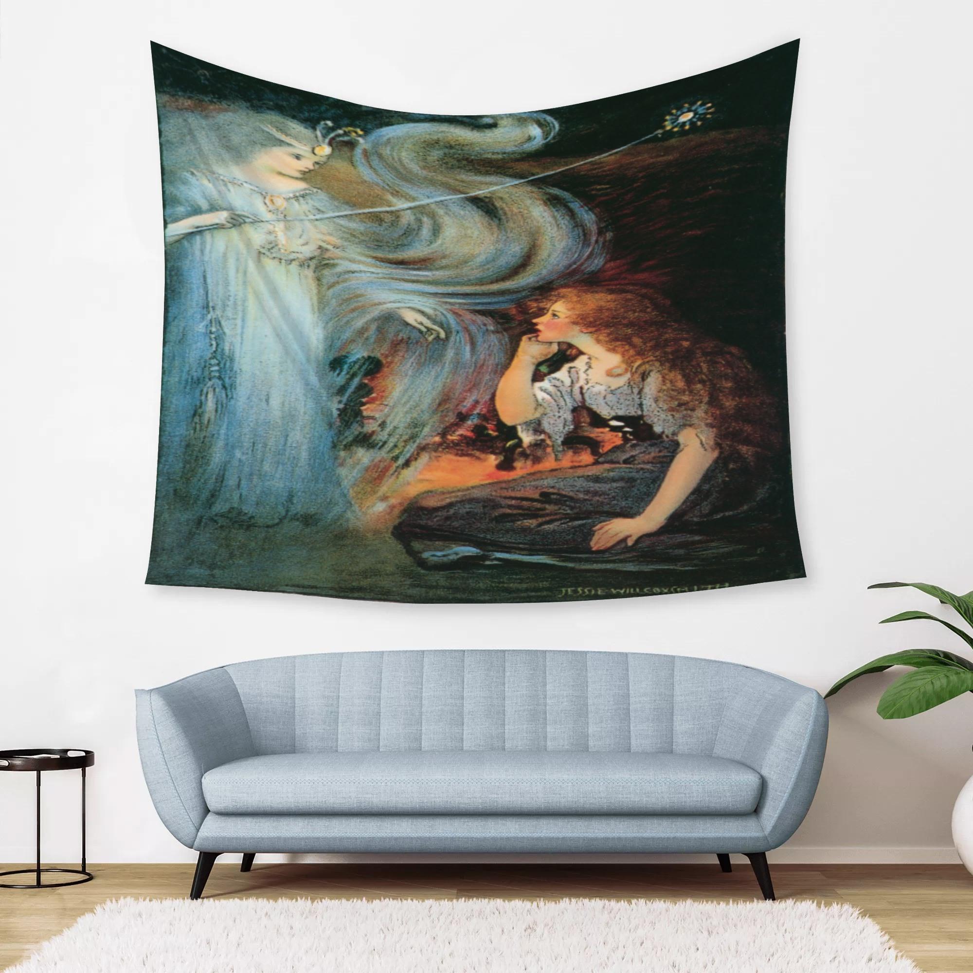 ジェシー・ウィルコックス・スミス 「シンデレラとガラスの靴」(タペストリー) タペストリー ユニセックス ホームデコレーション 全て シンデレラとガラスの靴 パブリックドメイン