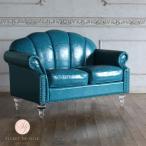 2人掛け ソファ シェル型 二人用 ソファー アンティーク調 貝殻 長椅子 レトロ ヴィンテージ モダン リビング ワンルーム ターコイズブルー VS2P49CF