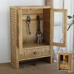 ラタン ガラス扉付き ミニキャビネット フック 引出し 両開き 扉収納 キーフック ボックス 箱 小物入れ 収納 籐 アジアン家具 韓国インテリア