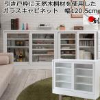 キャビネット ガラス扉 ホワイト 引き戸 薄型 省スペース 幅120 天然木 桐 木製 日本製 完成品