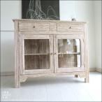 キャビネット おしゃれ 収納 可愛い ガラス フラップ 天然木 フレンチ フレンチカントリー 完成品 113 幅 木製 パイン 無垢 配送員設置 梱包材回収
