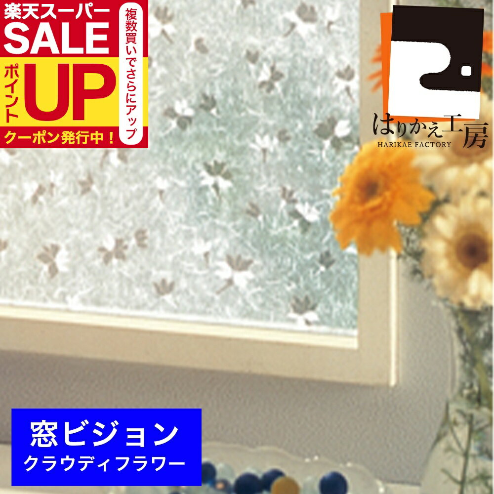 \40%OFF+クーポン/装飾・目隠し窓ガラスフィルム水を使わずピタッと貼れる♪窓ビジョン VMP-J18 クラウディフラワー 92cm×1.8m UV紫外線95%カット ガラスの飛散防止効果 防災対策