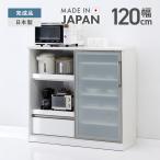KRN 120幅 カウンター下収納庫 ミストガラス スライド扉 薄型 浅型32.5cm サイドボード 光沢ハイグロス ホワイト木目 ハイカウンター 引き戸 PR kr kn 10パ引き