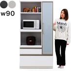 キッチンカウンター 食器棚 ロータイプ レンジ台 完成品 幅90cm 引き戸 収納 モダン 引き出し付き 国産