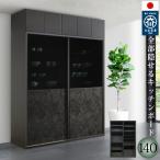 キッチンボード 140cm幅 レンジ台 キッチン収納 日本製 大川家具 完成品 レンジが隠れる 隠せる 食器棚 クリスタルトップガラスの引き戸