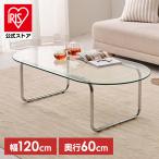 ガラステーブル 丸テーブル ローテーブル センターテーブル ガラス天板 シンプル シルバー オーバル おしゃれ ガラステーブル 120×60 (代引不可) (TD)