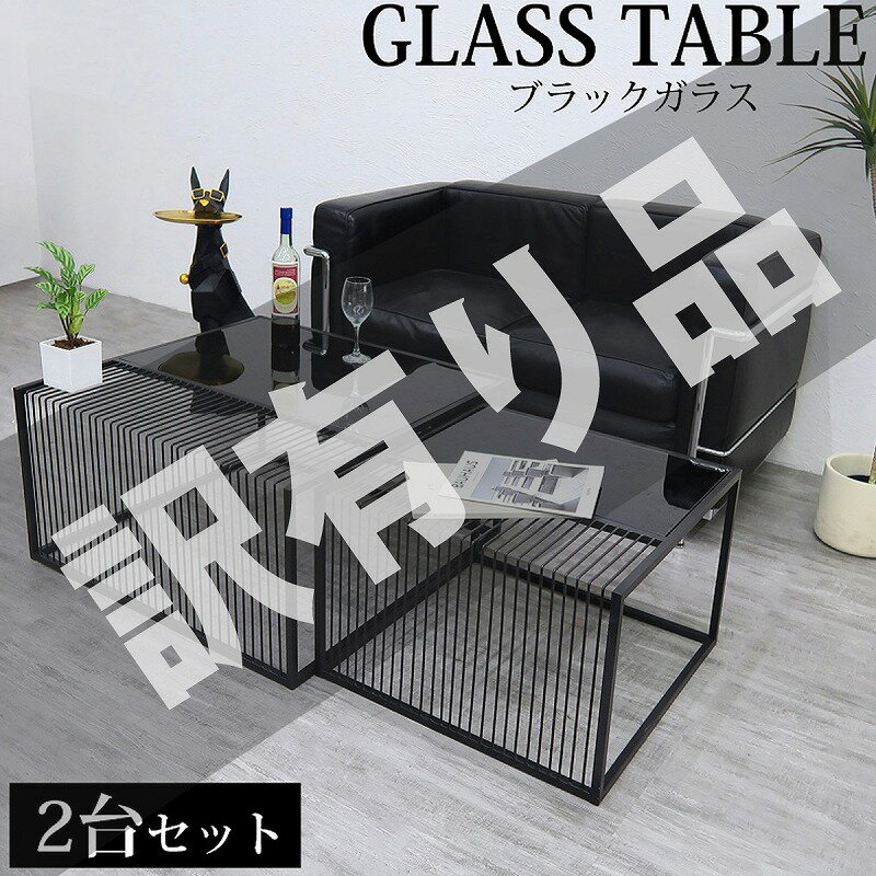 【全品最大P23倍!30日まで】訳有 センターテーブル 2台セット ガラステーブル ブラックガラス ローテーブル 黒ガラス 高級 収納付き ガラス モダン 北欧 インダストリアル おしゃれ ソファ 直径80cm 60cm CT-07 WK-23