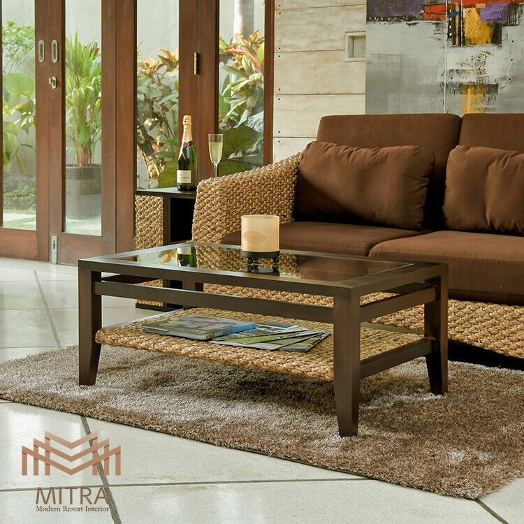 ウォーターヒヤシンス ガラスローテーブル マホガニー アジアン家具