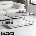 テーブル ガラステーブル センターテーブル ローテーブル おしゃれ モダン 白 鏡面 リビングテーブル ガラス アクリル 長方形 シルバー 高級感 幅105cm