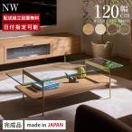 パモウナ リビングテーブル 幅120cm 高さ33.5cm 奥行45cm NW センターテーブル ガラス天板 ローテーブル 脚付 棚板付き 国産 完成品 高級感 送料無料