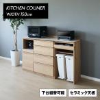 キッチンカウンター ゴミ箱収納 レンジ台 食器棚 ロータイプ 幅150cm 木製 セラミック天板 コンセント付き 引き出し