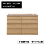 ゴミ箱収納 キッチンカウンター 食器棚 ロータイプ 幅150cm 木製 ナチュラル セラミック天板 引き出し コンセント付き