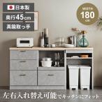 食器棚 キッチンカウンター 収納 ラック ボード おしゃれ 幅180cm ゴミ箱 引き出し ストッカー 作業台 レンジ台 ロータイプ 日本製 半完成品